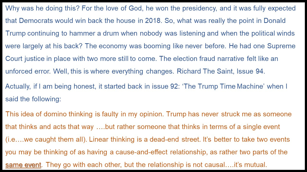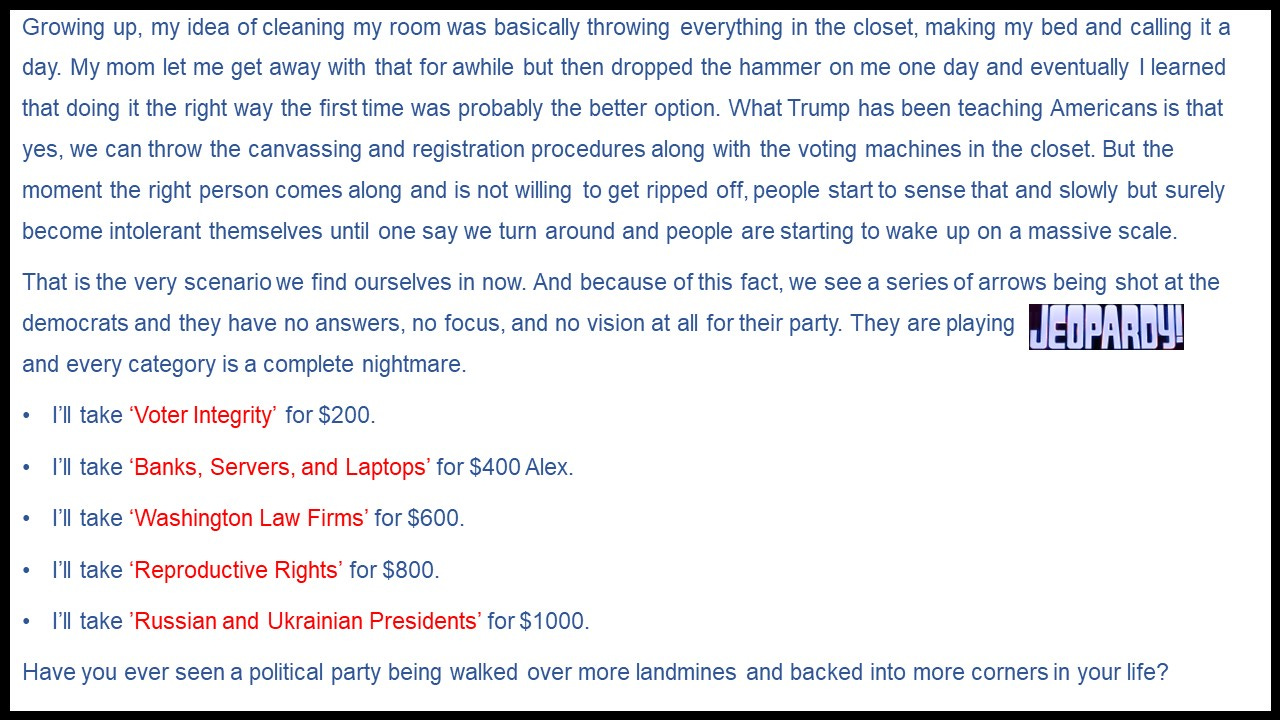 Excellent. Since listening to part 4 and reading 1 and 2 a calm has come over me I have not known since Brandon took office. Devolution helped immensely and these have "sealed the deal", I am pretty sure we got this. Thanks for your hard work, I am now off to part 3.